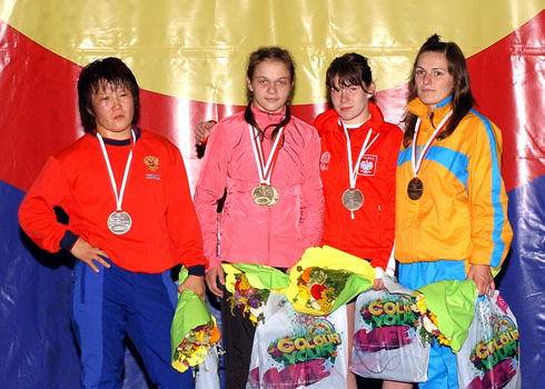 【48kg級】 《左から》2位=Lorisa Oorzhak(ロシア)、 優勝=Maria Stadnyk(アゼルバイジャン) 3位=Anna Lukasiak(ポーランド)、Lyudmula Balushka(ウクライナ)