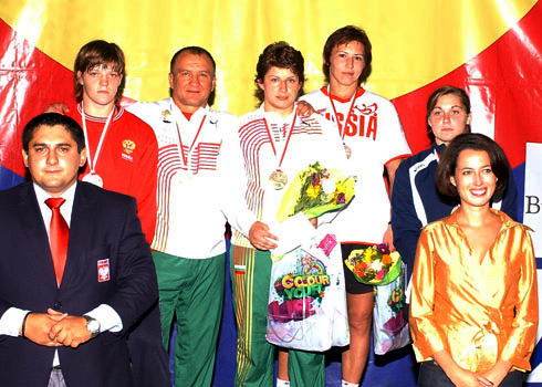 【72kg級】 (左から)2位=Ekatarina Bukina(ロシア)、ブルガリアのコーチ、優勝=Stanka Zlateva(ブルガリア) 3位=Guzel Manurova(ロシア)、Ali Bernard(米国)