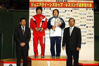 ジュニアクイーンズカップ最終日は4月4日、東京・駒沢体育館で各部門各階級の準決勝と決勝が行われ、ジュニア48kg級で学生チャンピオンの明尾弥紀(環太平洋大)が優勝。最優秀選手に贈られるクイーンズカップを受賞した。51kg級では、2008年全日本チャンピオンで、肩の負傷で戦列を離れた堀内優(日大)が優勝。ジュニア優秀選手に選ばれた(右写真=中央右が明尾、同左が堀内)。