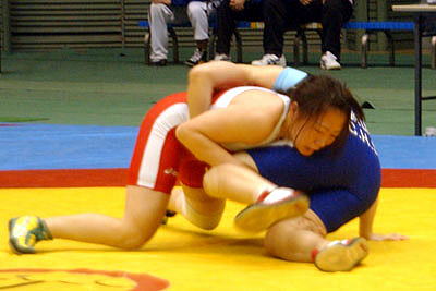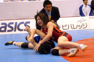 | 【67kg級】 飯島千晶(赤=日大)○[2−0(TF7-0=1:51,3-0)]●吉井瑞江(群馬・富岡実業高) |