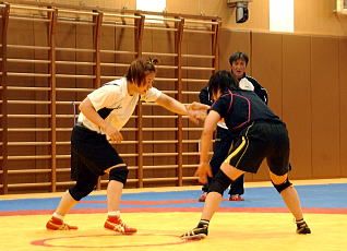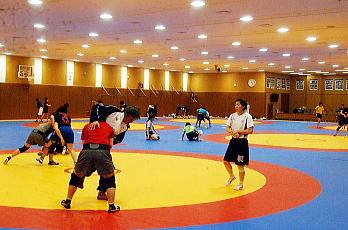 | W杯4戦無敗と実力を見せた63kg級の伊調馨(ALSOK綜合警備保障)。 | 浜口京子のが城に挑むことになった63kg級アジア・ジュニア・チャンピオンの立光詩織。 | W杯欠場の吉田沙保里(ALSOK綜合警備保障=右から2人目)も元気に参加。 |