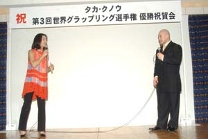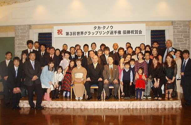今年3月27〜28日にポーランド・クラクフで行われた世界グラップリング選手権のGi(道着着用)90kg級で、日本選手として初めて世界チャンピオンに輝いた久能孝徳選手(チーム太田章)の祝勝会が4月28日、千葉県浦安市のシェラトン・グランデ・トーキョーベイ・ホテルで行われた。