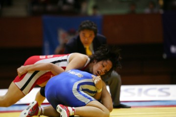 まだ午前のうちに会場に緊張感が走った。正田が敗れた。相手は上位争いに食い込んでくるとは予想されなかったダークホース、島田佳代子(自衛隊)だ。「減量がなくて、足も体も動いていて…。それが裏目に出ました」。油断をもたらしたのか、島田にストレート負け。「相手の動きを見てしまって、自分のレスリングができませんでした」