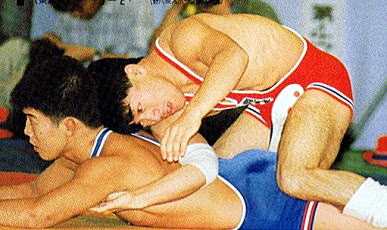時は過ぎ、拓大、山梨学院、早大などが力をつけ始めると、その地位は下降。OBとして一抹の寂しさを覚えた。「OBとして寂しかったです。なんとか強化したいと思いましたよ」。若松監督は早大・太田拓弥コーチ、神奈川大・吉本収監督と同期。早大はいまや優勝候補の最右翼に成長した。「同期ですし、いい刺激になる」と腕鳴るようだ(左写真:現役時代の若松監督=学生二冠王者に輝いた1991年全日本大学選手権)。