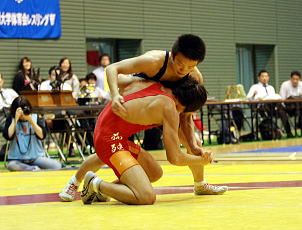 層が厚い階級は牧瀬、入江の2人がレギュラーを争う60kg級。牧瀬はグレコローマンで全日本学生選手権、全日本大学グレコローマン選手権ともに準優勝(左写真:昨年の全日本大学グレコローマン選手権で闘う牧瀬=青)。入江は昨年の全日本大学選手権3位の実績。若林に続いて60s級を取れれば、どの大学にも勝負を仕掛ける準備が整う。