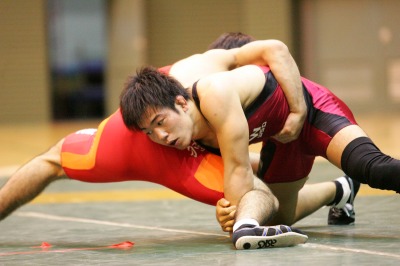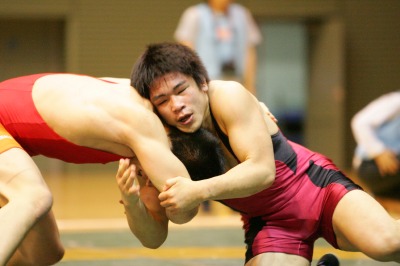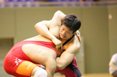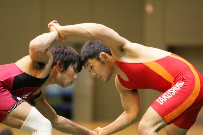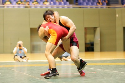 【74kg級】 高谷惣亮(拓大=赤) ○[フォール、2P1:02(0-1=2:03,F5-0)]● 北村公平(早大) 《試合経過》第1ピリオド残り50秒、早大・北村がタックルに入るがスタンド。高谷が終盤にバックを奪ってテークダウン体勢に入ったが、時間切れ。クリンチで北村。第2ピリオド、タックルに入る高谷を、北村はタックル返しで応酬。北村3−高谷2となる。さらに、高谷が2度目のタックル攻撃からフォールした。 |