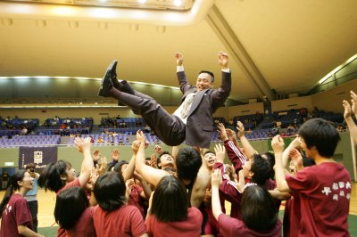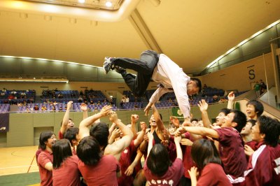 | 真島洋一コーチの胴上げ。 | 長島和幸コーチの胴上げ。 |
