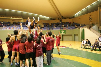 | 松本桂主将の胴上げ。 | 62年ぶりの優勝を決めた選手たち。 |