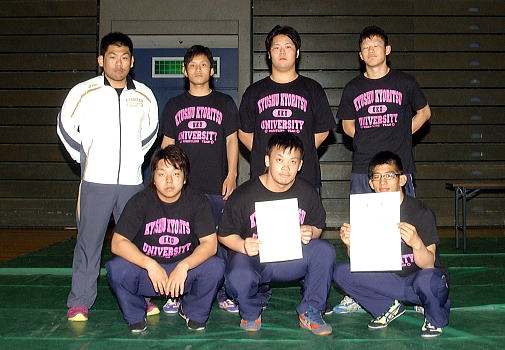 5月22〜23日に大阪・堺市金岡公園体育館で行われた西日本学生春季リーグ戦で、初出場の九州共立大(右写真)が二部リーグで3勝(2敗)をマーク。3位に食い込んだ。昨年4月に創部し、歴史は1年1ヶ月。部員数は6人(うち1人は負傷欠場)。健闘と言えるだろう。