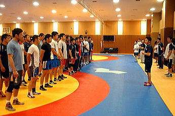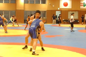 男子両スタイルの全日本チームが5月28日、東京・味の素トレーニングセンターで世界選手権(9月、ロシア・モスクワ)の代表決定後の初の合宿をスタート。アジア・ジュニア選手権(6月、中国・黄山)、世界ジュニア選手権(7月、ハンガリー・ブダペスト)、世界学生選手権(10月、イタリア・トリノ)の代表選手も加わり、総勢70選手の合宿となった(右写真)。6月2日まで行われる。