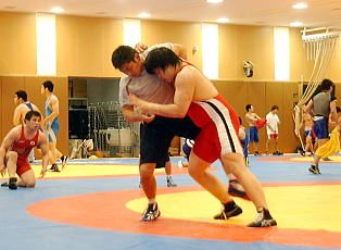 | アジア選手権金メダルの湯元進一(自衛隊)。心は来年の世界選手権? | グレコローマン重量級の意地を見せた斎川哲克(両毛ヤクルト販売)。チームのエースとなれるか。 | フリースタイル66kg級のライバル、米満達弘(右=自衛隊)と小島豪臣(K-POWERS)が壮絶練習。 |