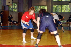 「攻めないんだったら、スパーリングなんてやらなくていい! 腕立て伏せをやってろ!」−。栄和人・女子強化委員長(至学館大教)の怒号が響き渡った。世界選手権(9月6〜12日、ロシア・モスクワ)の日本代表を含む全日本女子チームが6月23日、長野・菅平で合宿をスタート(右写真)。24日、報道陣に練習を公開した。