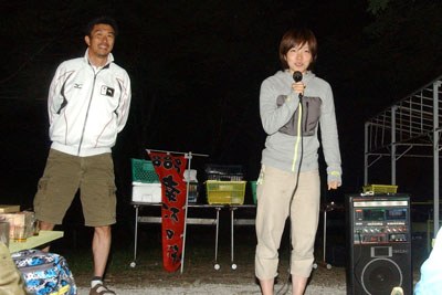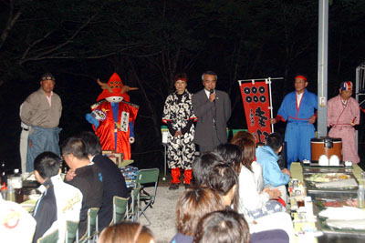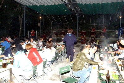 | 24日夜のバーベキューでは、初めて菅平で合宿する全日本女子チームを、地元のイベント会社が歓迎した。 | |