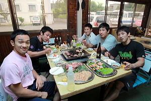 | グレコローマン期待の星、長谷川恒平 | 激しい練習の合間のバーベキュー会。 | |