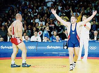 ガードナーはシドニー五輪の決勝で、五輪4連覇、世界選手権を合わせて13年連続世界一を目指したアレクサンダー・カレリン(ロシア)と対戦。延長の末に1−0で勝ち、カレリンに初の国際大会の黒星をつける歴史的勝利を挙げた(右写真)。この勝利で米国スポーツ界のヒーローとなり、最高のアスリートに授与されるサリバン賞をはじめ、数々の賞を受賞した。