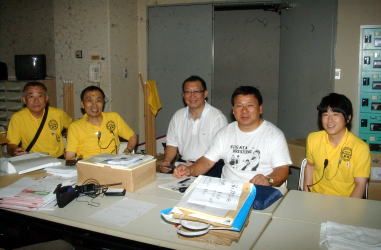 題は成績。やはり地元チームが活躍し、大会を盛り上げたいところだ(左写真=広島県協会からアドバイスを受ける新潟県協会関係者。右から2人目が新潟県協会の伊藤正男事務局長、左から2人目が広島県協会の衣川知孝事務局長)。