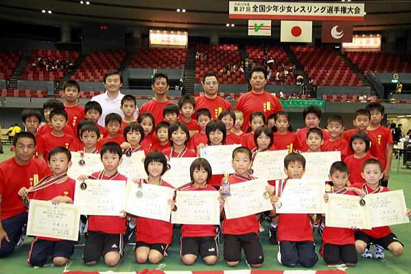 今年の全国少年少女選手権(7月24〜25日、広島市)で、最も多くの選手が出場したチームが三重・四日市ジュニアクラブだ。登録者は50人を超え、今回は39人がエントリーした。1988年に連盟に正式登録。日体大時代に1年生でグレコローマンの学生王者に輝いた宇野勝彦監督を中心に運営し、強さと20年以上の伝統を兼ね備えるチームだ。今大会は15人が2日目の準決勝に進出。うち5人が優勝した。