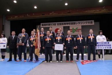 全国高校選抜大会の学校対抗戦2位。個人戦でも60s級の桑原諒と66s級の川村健太が銀メダルを獲得。50s級の山ア拓馬も学校対抗戦で霞ヶ浦の小宮佑介にフォール勝ちしていることから、あと一つの勝利を計算できれば、十分に勝機はある。