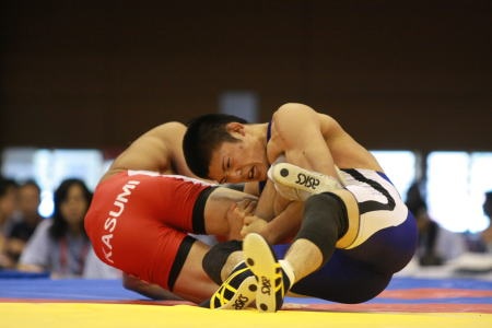 【66kg級】 松田健悟(秋田商=青)○[2−0(5-0,1-0)]●井手倫太郎(霞ヶ浦) 松田のアンクルホールドがさえ、秋田商が“王手”! |