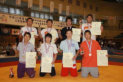 三笠宮賜杯全国高校総体(インターハイ)レスリング競技最終日は8月5日、沖縄県石垣市総合体育館で個人戦の決勝までが行われ、7階級で3月の全国選抜大会(センバツ)の王者が優勝した。