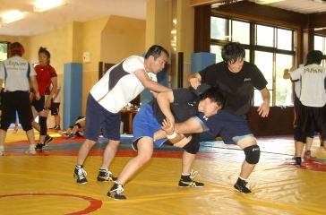 その2人以外にずば抜けた選手はおらず、マークする相手を絞れる状況だ。世界選手権へ向けての重点課題は、「タックルに入った後のポイントへのつなげ方と、入られた時のもろさの克服」。前進のための後退を経て、世界へ飛躍する堀内が初出場初優勝の快挙を達成することができるか(左写真=藤川健治コーチの指導で技術習得に励む堀内)。