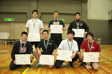 | 【優勝選手】 (前列左から)梶雅晴=55、内村勇太=60、岡本佑一=66、武富隆=74、 (後列左から)岡太一=84、有薗拓真=96、谷田昇大=120 |