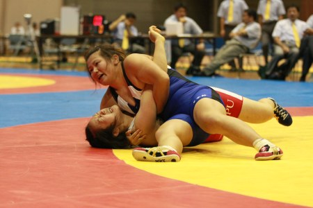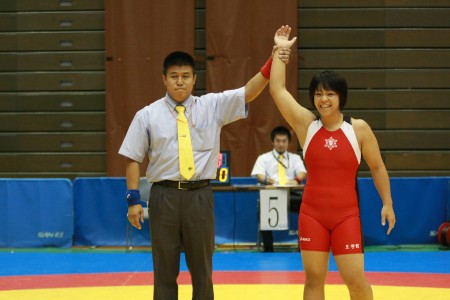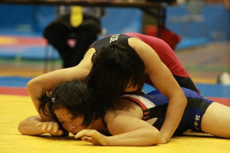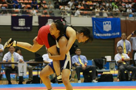 | 【55kg級決勝】 新井千明(早大=赤)○[2−0]●吉田理乃(至学館大) |