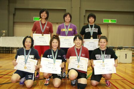 | 【優勝選手】 (前列左から)内田奈美=48、岩群安奈=51、新井千明=55、佐藤文香=59、 (後列左から)高橋海里奈=63、井上佳子=67、増尾優華=72 |