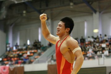決勝戦の鈴木啓二(早大)戦はフルピリオドにもつれる接戦だったが、第3ピリオドにタックルで均衡を破り、最後は連続ローリングでテクニカルフォール勝ちを収めた。セコンドで岡の勇姿を見守った須藤元気監督は「自分のことのようにうれしいです。岡は、さなぎから蝶になりましたね」と笑顔で話した。