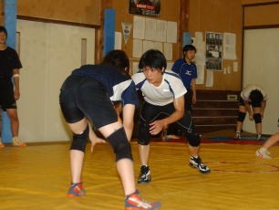 腰を痛めたことは初めての体験。「同い年の田岡秀規(自衛隊=2006年世界選手権フリースタイル55kg級代表)など身近に腰痛に悩まされて苦労した選手がいましたから、と治るのか不安になりました」(右写真=腰痛と闘いながら練習していた坂本)。