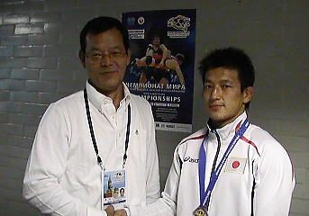 前日(9月6日)は父の誕生日だったそうで、銀メダルは最高の誕生日プレゼントになった。説男さんは「(家族全員で)応援に来たかいがありました」と、まず兄の殊勲に喜びの顔を見せ、「まだ、弟(フリースタイル84kg級の篤史)の試合もあります」と、もう一度、この感激を味わう腹積もりだ(右写真=祝福してくれた父と松本)。