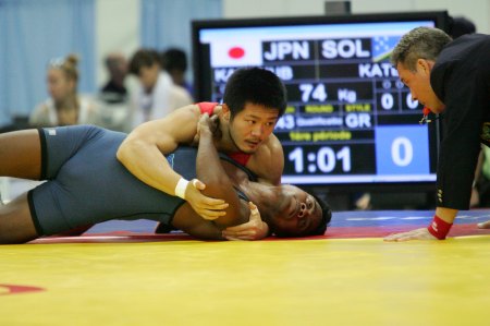 | 【男子グレコローマン74kg級1回戦】 金久保武大(マイスポーツ=赤)○[フォール、1P1:06]●Tebitara Katea Ueresi(ソロモン) |