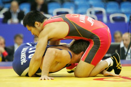 | 金久保は格下選手相手に開始から積極的に攻めた。 | がっちり押さえ込み、最後はフォール勝ち。 |