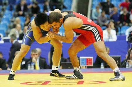 | 【男子グレコローマン74kg級2回戦】 金久保武大(マイスポーツ=青)○[2−0(1-0,2-0)]●Petros Manoulidis(ギリシャ) |