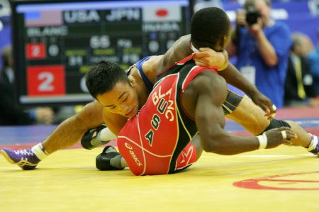 | 【男子フリースタイル55kg級4回戦】 稲葉泰弘(警視庁=青)○[フォール、2P1:50(0-2、F4-2)]●Obenson Blanc(米国) |