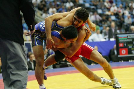| 【男子フリースタイル55kg級準決勝】 稲葉泰弘(警視庁=青)●[1−2(TF0-6=1:32,1L-1,1-2)]○Toghul Asgarov(アゼルバイジャン) |
