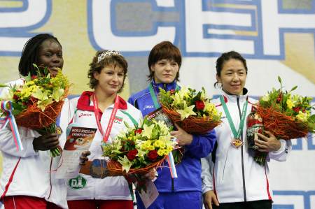 | 金ではなかったものの、表彰式で最高の笑顔。 | スタンカ・ズラテバ(ブルガリア=左から2番目)を追う闘いが再スタート。 |