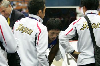 フリースタイル66kg級では、2007世界&2008年北京五輪王者が初戦敗退、五輪2位が2回戦敗退、昨年の世界チャンピオンや3位の米満が敗者復活戦に回れないなどハイレベルの選手がそろっている。この階級に限らないだろうが、ある年にメダルを取っても、それが必ずしも翌年につながるものではない現実も突きつけられた(右写真=初戦敗退の米満とコーチ陣)。