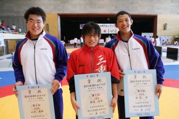 今大会のフリースタルには、春夏を制した選手として50s級の山崎達哉(東京・自由ヶ丘学園)、55s級の高橋侑希(三重・いなべ総合)、66s級の保坂健(埼玉・埼玉栄)、84s級の松野裕也(茨城・霞ヶ浦)、96s級の山本康稀(埼玉・花咲徳栄)の5選手がエントリー。高校三冠王に挑戦し、うち55s級の高橋侑希、66s級の保坂健、96s級の山本康稀が達成した。高橋と山本は2年生での快挙(右写真=左から山本、高橋、保坂)。