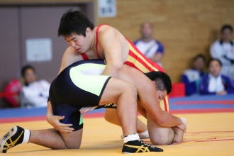 96s級の山本康稀も快挙を達成し、2年生で三冠王者になった。同級としては決して大柄でない山本の強みは、「背筋力」と「走力」。試合中は休むことなくマット上を走り回って