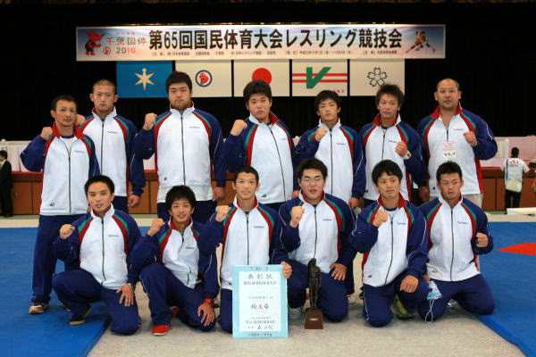 成年フリースタイルでも、55kg級の湯元進一(自衛隊)が60s級で優勝するなど自衛隊勢が多数入賞したことで、総合67点をマーク。2位の山口県を7.5点も引き離した。野口篤史総合監督(埼玉栄教)は、「2005年の地元国体で優勝してから、6年で3回も優勝してます」と終始笑顔だった。