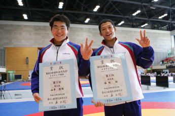 広げている結果が、国体のように県代表対抗戦になると、国内トップの戦力へつながっている(左写真:少年フリースタイルで優勝した山本=左と保坂)。