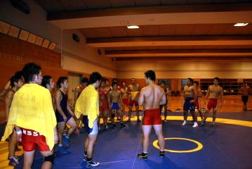 OBのエールはしっかりと学生たちに伝わっていた。グレコローマンの渡部主将は「出場停止処分中、先輩たちの活躍にとても励まされた。世界選手権でも、一緒に練習している松本先輩がメダルを取って、金久保先輩も5位入賞。とても感謝しています」と話し、試合がなくても練習に気合が入ったそうだ(右写真=大会へ向けて練習する渡部主将)。