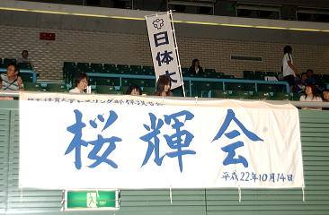 選手、監督たちは唇をかみ締めた大会になったが、観客席には募る思いで学生達を見つめる保護者たちの姿があった。「桜輝会」、つまり父母会の人達だ。山名隆貴総合主将の父である岳彦氏が会長となり、昨年の事件後に発足した。大会当日は会長の妻である里美さんが会旗と日体大の大学旗を掲げた。
