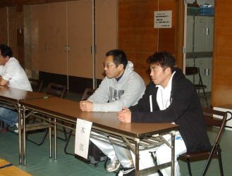 押田審判委員長は審判クリニックで、「審判の一番重要な任務はけがをさせないこと」を力説。危険な体勢になったらすぐにストップをかけることの重要性を訴えた。「早く止めすぎだ、という抗議が来るとは思うが、事故が起きてからでは遅い」とし、試合をさばく人間としての心構えを話した(右写真=試合を見つめる押田審判委員長。右は福井クラブ・白井正良代表)。