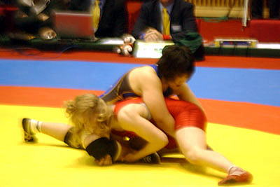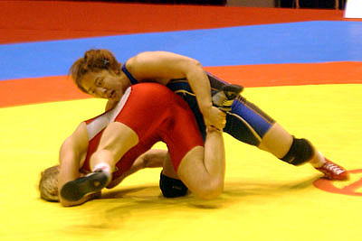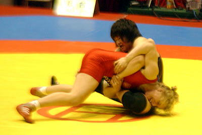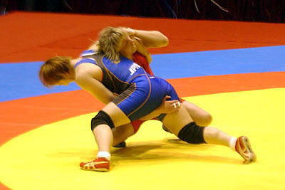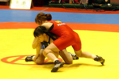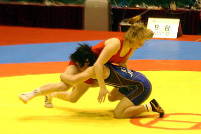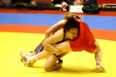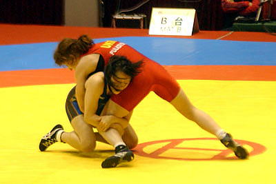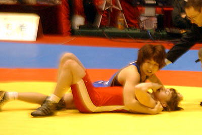 | 【試合内容】第1ピリオド、伊調が相手の体を振ってバックを取り1−0。終盤にもテークダウンを決めた。第2ピリオド、0−0のあと、ラスト10秒に崩して1点を取り、またさきで攻めたところで時間切れ。 | |
