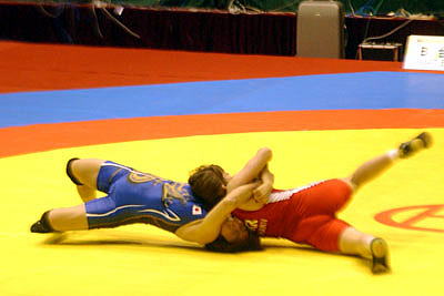 | 【試合内容】第1ピリオド、三村は左脚へのタックルで1点を先制したが、終盤にタックルで1点を取られ、ラストポイントでこのピリオドを落とした。第2ピリオドは三村が飛行機投げで先制。相手のがぶり返しをつぶして1点を加え、2−1で取った。第3ピリオドは1−1で、ラストポイントにより敗れた。 | |