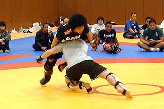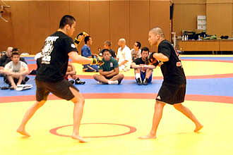 参加したのは、ワールドビクトリーロード(SRCの主催団体)、ZST、パンクラス、修斗、パンクラチオン、グラップリング、ブラジリアン柔術、クラッシュ、ベルトレスリング、ムエタイ。ここに日大レスリング部が加わり、21日まで9セッションの練習・講義が行われる。
