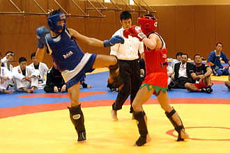 | 【ムエタイ】タイに伝わる伝統国技。K−1と違い、ヒジ打ちや首相撲も認められる。 | 【修斗】日本で最も歴史のある総合格闘技。アマチュア部門も充実しており、競技性を重視している。 |