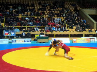 大会会場でのエキシビジョンという形で行われたため、他国の選手のほか、どこから集まったのか約200人の一般客が観戦に訪れており、前回とは違った盛り上がりを見せた(右写真)。前回はブルガリアのトップチームということもあり、力の差を見せつけられた結果となったが、今回は全階級違う相手で、2、3番手の選手と思われる。特に世界レベルでの成績もない選手ばかりのようであった。